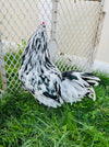 We have a few gorgeous Ermine Ameraucana roosters available!